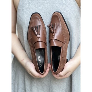 Giày Loafer giày lười da lộn CÓ SẴN phối da cao cấp ba màu Nâu đỏ - Nau be - Đen