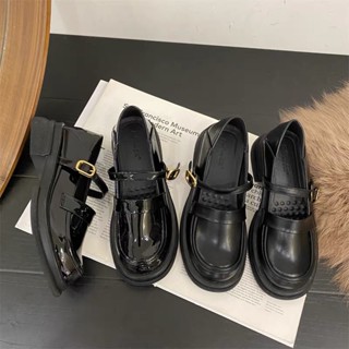 Giày Xăng Đan Sandals MaryJanes quai màu đen da bóng da lì đế cao 3cm Lolita Ulzzang Hàn Quốc CÓ SẴN