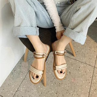 Giày Sandal + Dép xỏ 2 trong 1 đi được hai kiểu cao cấp màu kem quai ngang da mềm có sẵn