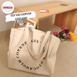 Túi Tote Canvas Vintage In Chữ Tròn Đeo Vai Style Hàn Quốc