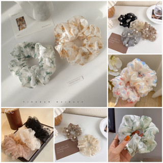 Dây buộc tóc scrunchies voan tơ trong trẻo họa tiết siêu xinh mùa hè 2023