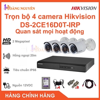 [NHÀ PHÂN PHỐI] Trọn Bộ 4 Camera 2MP Hikvision DS-2CE16D0T-IRP Full HD 1080P - Hàng Chính Hãng Siêu Bền, Chuẩn H265+