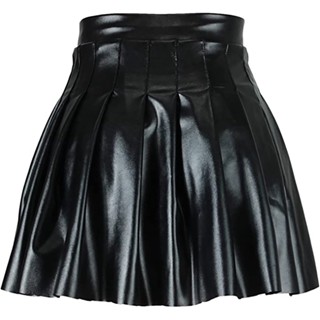 Chân váy da xếp ly có lót quần Pleated Skirt Leather