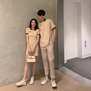 SET ĐÔI màu be - Áo trơn basic và váy dáng xuông trái tim polo