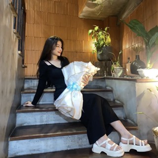 Váy Polo HEAVEN SENT thun gân form xuông co giãn 2 màu đen và trắng tiêu