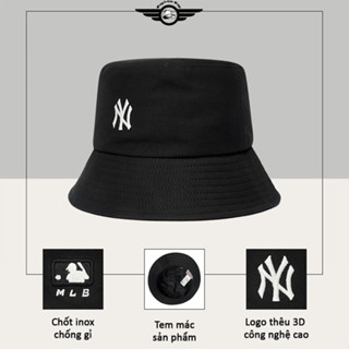 Mũ bucket MLB Basic màu đen hàng xuất dư cao cấp phong cách Hàn Quốc