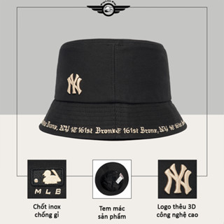 Mũ bucket MLB Basic màu đen thêu chỉ vàng viền mũ hàng xuất dư cao cấp phong cách Hàn Quốc