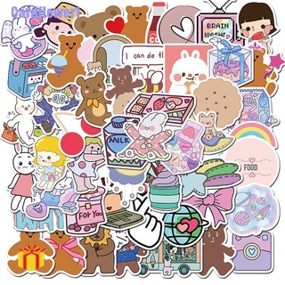 Set 50 miếng dán trang trí laptop hình gấu phong cách Hàn Quốc dễ thương