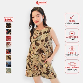 Đồ Bộ Nữ 𝐂𝐀𝐑𝐃𝐈𝐍𝐀 Chất Lanh Tre Cao Cấp Quần Đùi Áo Cổ Tròn Tay Cánh Tiên Họa Tiết 3LF06