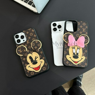Ốp Điện Thoại Da In Hoạt Hình Mickey Minnie 3D Cho iPhone 14 13 11 12 Pro Max