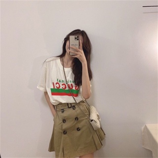 Gu - CC - - Áo Thun Tay Ngắn Dáng Rộng In Logo Tia Chớp Xanh Lá Thời Trang Mùa Hè Thoải Mái Giản Dị