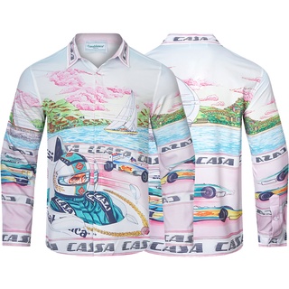 Casablan * Áo Sơ Mi Tay Dài Màu Hồng In Hình Đôi Mắt Đồ Họa Đua Xe Thoải Mái Giản Dị