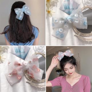 Kẹp tóc phối nơ bản to in họa tiết hoa duyên dáng dành cho phái đẹp