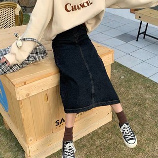 chân váy jean/denim A-line xẻ tà HÀNG CÓ SẴN
