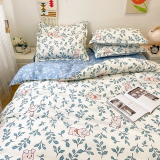 Bộ chăn ga gối Cotton poly M2T bedding gồm vỏ chăn mền, drap ga giường và 2 vỏ gối nằm - Pl Heo ngủ