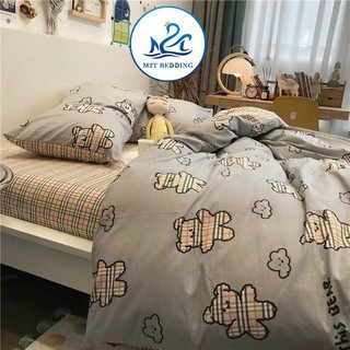 Bộ chăn ga gối Cotton poly M2T bedding Gấu xám BBR, vỏ chăn mền, drap nệm và 2 vỏ gối