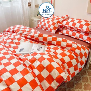 Bộ chăn ga gối Cotton poly M2T bedding, vỏ chăn mền, drap ga giường và 2 vỏ gối - Pl Kẻ lưới