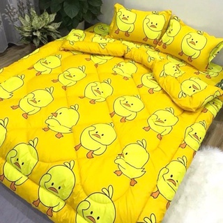 [GIÁ HUỶ DIỆT] Trọn Bộ Chăn Phao 5 Món Ga Gối Mẫu Vịt vàng Poly loại 1, Chăn Bông Như Hình Dày Đẹp Cao Cấ