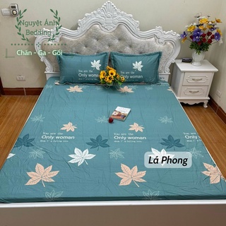 (Freeship + SALE) Drap bo chun Cotton 100% mẫu Lá phong (có kèm áo gối) được chọn mẫu - Ga gối cotton loại đẹp