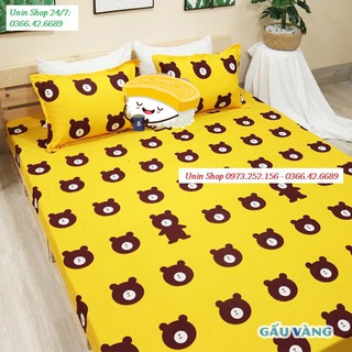 (Thanh lý) Bộ 3 món ga kèm 2 áo gối m6/m8/2m2 drap bo chun bọc nệm mẫu Gấu vàng poly cotton