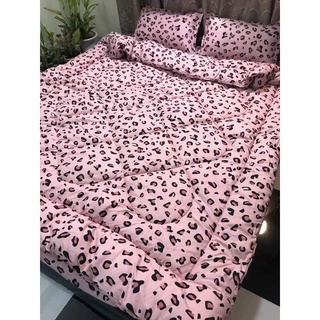 [GIÁ HUỶ DIỆT] Trọn Bộ Chăn Phao 5 Món Ga Gối Mẫu Báo hồng Poly loại 1, Chăn Bông Như Hình Dày Đẹp Cao Cấ