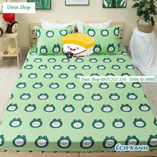 (Thanh lý) Bộ 3 món ga kèm 2 áo gối m6/m8/2m2 drap bo chun bọc nệm mẫu Ếch xanh poly cotton