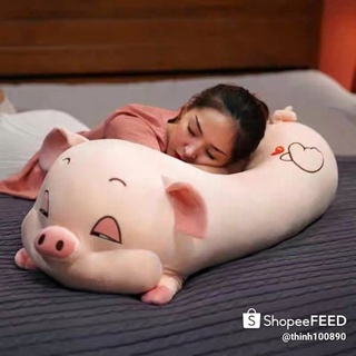 (Siêu giảm giá) ☘ Gấu bông heo hồng, ngủ gật, lợn mắt híp chất liệu minixo mẫu Heo híp xám sz 70cm - Có sz 55,70,90,110