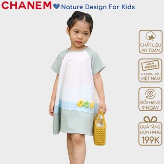 Váy bé gái SUNNY CHANEM ngắn tay phối gấu và hoa móc đáng yêu chất liệu cotton thoáng mát cho bé từ 1 - 10 tuổi