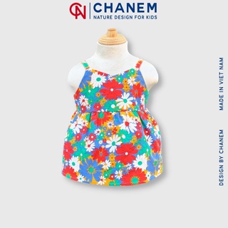 Váy hai dây cho bé gái CHANEM chất liệu cotton mềm mát cổ yếm eo nhún chéo phối hoa móc thủ công