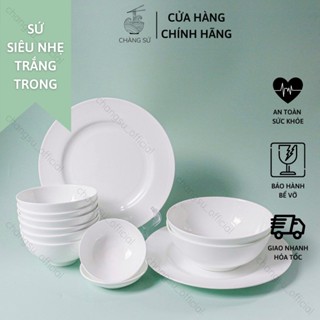 Bộ bát cơm sứ siêu nhẹ trắng trơn khử mùi - Set 6 và 10 chén ăn cơm sứ xương siêu nhẹ Minh Châu - Vỡ 1 đổi 1
