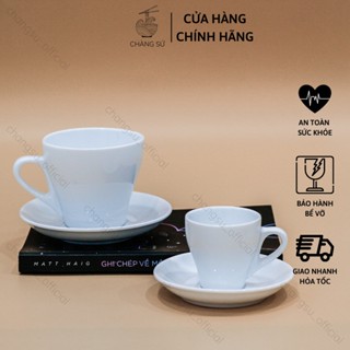 Ly cà phê Latte, ly cà phê Espresso dày dặn cao cấp Dílo và đĩa lót - Cốc cà phê sứ trắng giữ nhiệt - In theo yêu cầu