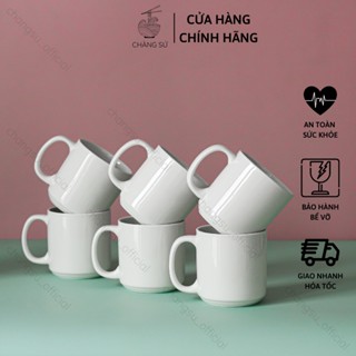 Bộ cốc sứ trắng hình trụ 6 ly uống nước có quai CN07 sứ Minh Châu - In theo yêu cầu