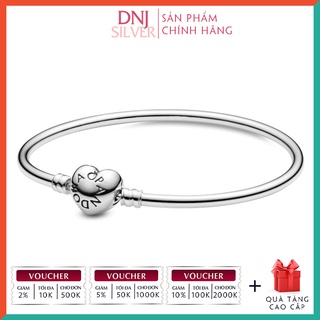 Vòng tay bạc 925 cao cấp - Mẫu vòng Heart Clasp Bangle, có thể mix thêm hạt charm vào vòng theo ý thích