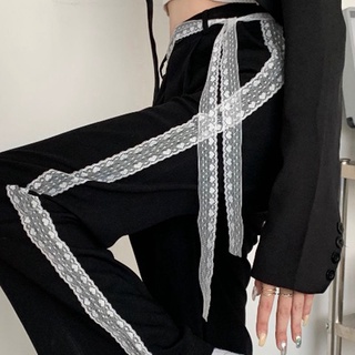 Quần dài lưng cao dáng rộng phối ren thiết kế trẻ trung cho nữ