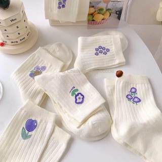 Vớ Dài Mỏng Họa Tiết Hoa Tulip Màu Tím / Trắng Đơn Giản Thời Trang Cho Nữ