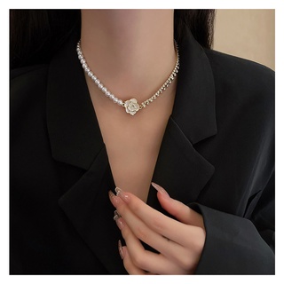 Vòng Cổ Choker Đính Hoa Trà Và Ngọc Trai zircon Thời Trang Sang Trọng Cho Nữ