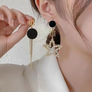 ❤zheting❤ Tai Ngôi Sao Năm Cánh Bất Đối Xứng Màu Đen Phong Cách Hàn Quốc Khí Chất niche