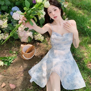 Đầm Maxi hoa nhí đi biển tiểu thư hở lưng phong cách Hàn quốc dáng ngắn cực xinh VH02