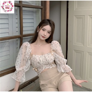 Áo hoa croptop cổ vuông phong cách hàn quốc cực xinh AH12