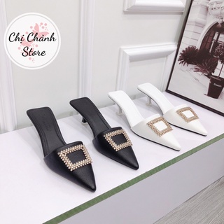 Guốc dép nữ cao gót 7p quai đôi xoàn đá chất da dày mềm mịn cực xinh - Chị Chảnh Store