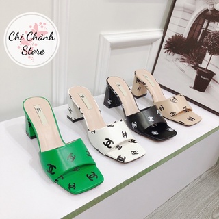Guốc, Dép Cao Gót 7p Siêu HOT Hàng Chuẩn Form Chất Da Mềm Mịn Đi Cực Êm - 4 Màu Trắng Đen Xanh Kem Logo Chị Chảnh Store