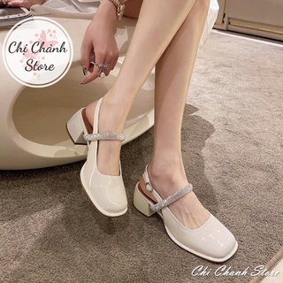 Guốc dép cao gót 3p bản ngang đính đá hàng chuẩn cao cấp sang trọng lên chân tôn dáng - Chi Chanh Store