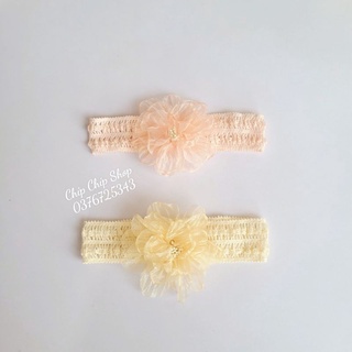 Turban nơ hoa ren nhún tiểu thư Hàn Quốc cho bé gái(4-12kg)_Chíp Chíp Shop