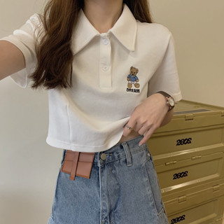 [Hot+ Ảnh Thật] G100 ÁO THÊU HÌNH GẤU CỔ BẺ NÚT GÀI CROPTOP DÁNG NGẮN CHIZISHOP TAY NGẮN