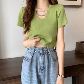 [New Color] ÁO CROPTOP ÔM BODY TAY NGẮN PHỐI DÂY CHUYỀN CHẤT THUN GÂN TĂM MÀU XINH CHIZISHOP