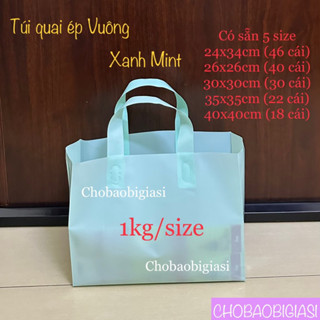 1kg túi quai ép VUÔNG xanh Mint bóng dẻo dai, dày dặn, chắc chắn đựng thời trang, phụ kiện...(hàng đẹp - SP y hình)