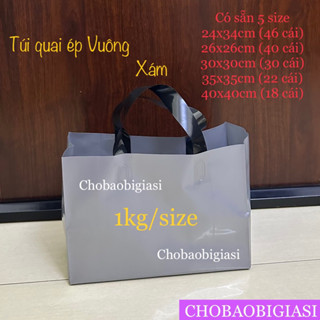 1kg túi quai ép VUÔNG màu Xám bóng dẻo dai, dày dặn, chắc chắn đựng thời trang, phụ kiện...(Hàng đẹp - SP y hình)