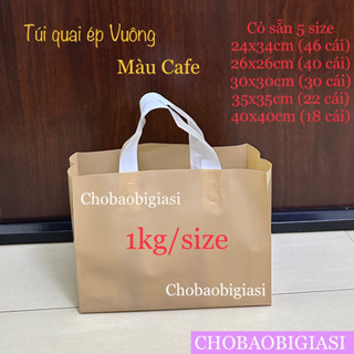 1kg túi quai ép VUÔNG màu Cafe bóng dẻo dai, dày dặn, chắc chắn đựng thời trang, phụ kiện...(hàng đẹp - SP y hình)