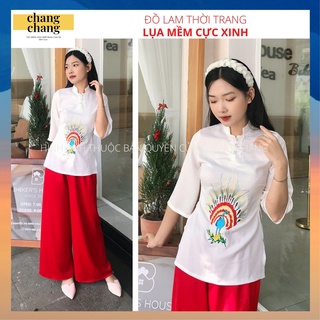 Đồ Lam, Đồ Bộ Đi Chùa Nữ Thêu Công Sắc Nét Cổ Tàu Thanh Lịch | Chang Chang
