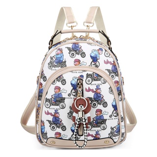 Ba Lô Chuwanglin Cỡ Lớn Bằng Da In Họa Tiết Gấu Dễ Thương Cho Nữ
